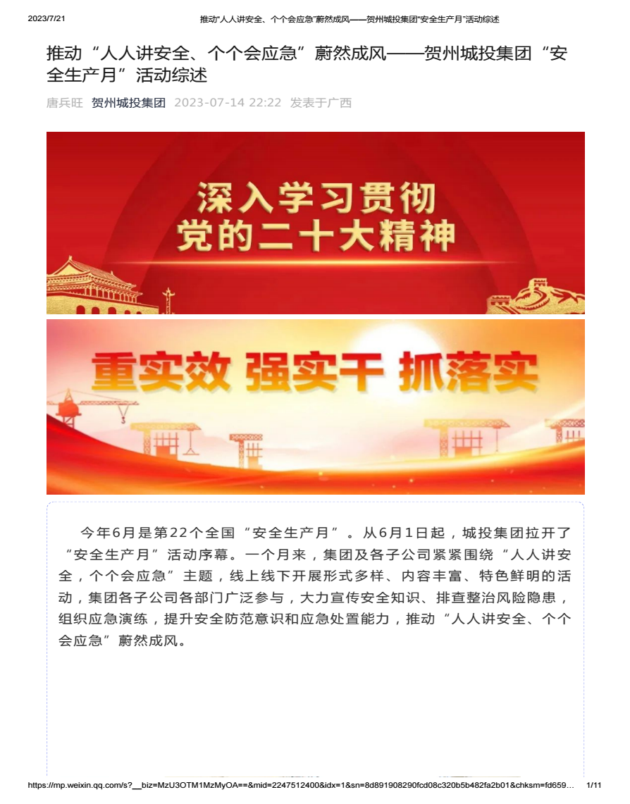 推動“人人講安全、個個會應急”蔚然成風——賀州城投集團“安全生產月”活動綜述2023-07-12